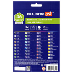 Карандаши художественные цветные акварельные BRAUBERG ART CLASSIC, 36 цветов, грифель 3,3 мм, 181531