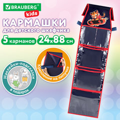 Кармашки-органайзер в шкафчик для детского сада BRAUBERG KIDS, крепление на липучке, наклейки-подсказки, 24х88 см, "Tiger", 273285