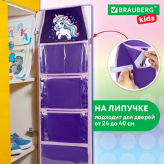 Кармашки-органайзер в шкафчик для детского сада BRAUBERG KIDS, крепление на липучке, наклейки-подсказки, 24х88 см, "Unipony", 273284