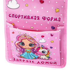 Кармашки-органайзер упакованы в плотный ПЭТ-пакет, который сохранит качество и товарный вид при хранении и транспортировке. Назначение: для девочек, Возрастная группа: 3-6 лет, Материал: полиэстер, Крепление: резинки, Количество карманов: 5 шт., Размер окошка для имени: 25 х 7,5 см, Дизайн: Best Friends, Серия: KIDDY PLUS SIZE, Высота: 80 см, Ширина: 26 см, Цвет: розовый, Упаковка: прозрачный пакет. Код: 271072