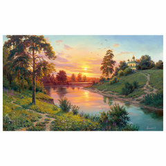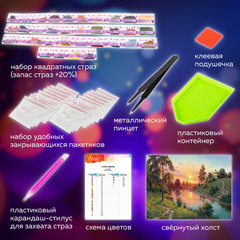 Картины стразами ОСТРОВ СОКРОВИЩ – это наборы для создания картин в технике алмазной мозаики с сюжетами известных российских художников. В наборе содержится все необходимое для создания шедевра своими руками.Картина стразами "Тишина" основывается на произведении "Тишина. Солнышко садится. Храм на берегу" российского художника Игоря Прищепы.