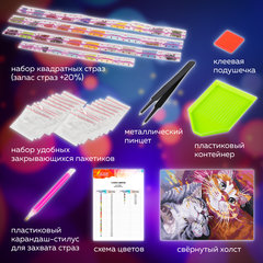 Техника алмазной мозаики проста в исполнении и не требует владения никакими специальными навыками. Все необходимые для работы материалы и инструменты входят в набор. С подробной инструкцией можно ознакомиться на упаковке.