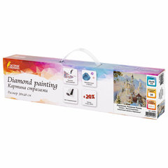 Размер готовой картины составляет 30х40 см. Картина полностью заполняется квадратными акриловыми стразами, благодаря чему готовая работа блистает и переливается на свету.