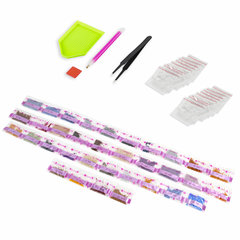 В набор входят: - свернутый холст размером 36х46 см; - набор квадратных страз разных цветов, пронумерованных в соответствии со схемой; - набор удобных закрывающихся пакетиков; - металлический пинцет; - пластиковый карандаш-стилус для захвата страз; - клеевая подушечка; - пластиковый контейнер; - схема соответствия цветов страз и символов на холсте.