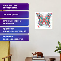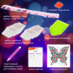 Картина стразами ОСТРОВ СОКРОВИЩ - это набор для создания картины в технике алмазной мозаики. Холст с нанесенным изображением и клеевым слоем заполняется акриловыми стразами. В наборе содержится всё необходимое для создания шедевра своими руками.Картина стразами "Бабочка" включает в себя: - свёрнутый в рулон холст размером 36х36 см; - набор сияющих страз разных цветов, пронумерованных в соответствии со схемой; - набор удобных закрывающихся пакетиков; - пластиковый карандаш-стилус для захвата страз; - клеевая подушечка; - пластиковый контейнер; - схема соответствия цветов страз и символов на холсте.