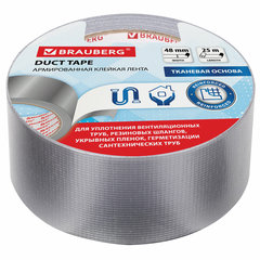 Клейкая АРМИРОВАННАЯ лента 48 мм х 25 м, ТКАНЕВАЯ ОСНОВА, BRAUBERG, 606770