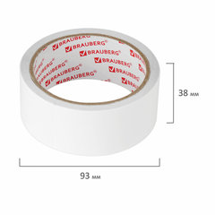 Клейкая двухсторонняя лента 38 мм х 8 м, ПОЛИПРОПИЛЕНОВАЯ ОСНОВА, 90 мкм, BRAUBERG, 600483