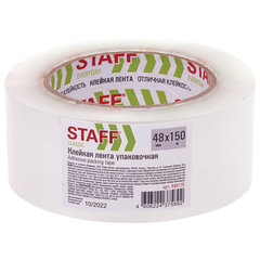 Упаковочная клейкая лента STAFF CLASSIC активно используется в торговле, промышленности, быту и подходит для оперативной упаковки с помощью диспенсера или вручную.Толщина скотча 40 мкм позволяет переносить воздействие низких температур и влажности и выдерживать вес коробки 15-17 кг. Отличается высокой адгезией клея (слипанием с поверхностью) и стойкостью к разрыву. Клейкой ленты шириной 48 мм и длиной намотки 150 м хватит на продолжительное время. Цвет - прозрачный.