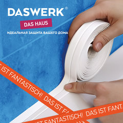 Бордюрная лента DASWERK используется в бытовых условиях для герметизации стыков и швов между раковиной, ванной, столешницами и прилегающими к ним стенами.Устойчива к появлению плесени, полностью водонепроницаема, не растрескивается, не усаживается и не высыхает.