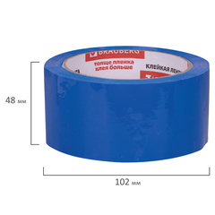 Клейкая лента упаковочная, 48 мм х 66 м, СИНЯЯ, толщина 45 микрон, BRAUBERG, 440076