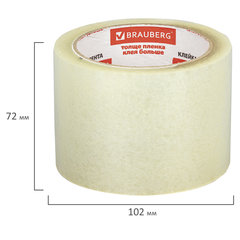 Упаковочная клейкая лента BRAUBERG активно используется в торговле, промышленности, быту и подходит для оперативной упаковки с помощью диспенсера или вручную. Отличается высокой адгезией клея (слипанием с поверхностью) и стойкостью к разрыву.Толщина скотча 45 мкм позволяет переносить воздействие низких температур и влажности и выдерживать вес коробки 15-17 кг. Клейкой ленты шириной 72 мм и длиной намотки 66 м хватит на продолжительное время. Цвет - прозрачный.