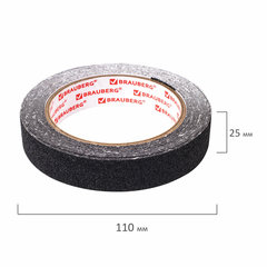 Клейкая ПРОТИВОСКОЛЬЗЯЩАЯ зернистая лента 25 мм х 5 м, ЧЕРНАЯ, основа ПВХ, BRAUBERG, 606772