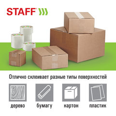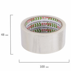 Упаковочная клейкая лента STAFF активно используется в торговле, промышленности, быту и подходит для оперативной упаковки с помощью диспенсера или вручную. Отличается высокой адгезией клея (слипанием с поверхностью) и стойкостью к разрыву.Толщина скотча 40 мкм позволяет переносить воздействие низких температур и влажности и выдерживать вес коробки 15-17 кг. Клейкой ленты шириной 48 мм и длиной намотки 66 м хватит на продолжительное время. Цвет - прозрачный.