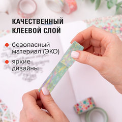 Товар относится к среднему ценовому сегменту. Ширина ленты: 15 мм, Длина намотки: 3 м, Количество в упаковке: 7 шт., Количество дизайнов в упаковке: 7 шт., Тон: Пастель, Тип клейкой ленты: декоративная, Серия: МИКС, Цвет: ассорти, Основа: бумага, Упаковка: термоусадочная пленка. Код: 661709