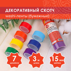 Товар относится к среднему ценовому сегменту. Ширина ленты: 15 мм, Длина намотки: 3 м, Количество в упаковке: 7 шт., Количество дизайнов в упаковке: 1 шт., Тон: Однотонные, Тип клейкой ленты: декоративная, Серия: Классические, Цвет: ассорти, Основа: бумага, Упаковка: термоусадочная пленка. Код: 661702