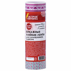 Бумажные клейкие ленты ОСТРОВ СОКРОВИЩ подходят для использования в скрапбукинге, декорирования поделок, открыток, оформления подарков. Декоративные ленты легко приклеиваются и надежно фиксируются на любой поверхности, придавая изделиям оригинальный вид.В наборе содержится 7 бумажных лент с романтическими дизайнами на полупрозрачной клеевой основе, каждая из которых намотана на пластиковую втулку. Ширина ленты 15 мм позволяет наклеить её даже на небольшие поделки, а длина 3 м даёт большой простор для творчества.