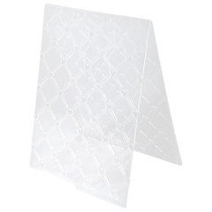 Клише для тиснения просты и удобны в использовании. Необходимо открыть папку, вложить в неё лист бумаги, картона или другого материала, закрыть папку и уложить в машинку для вырубки и тиснения ОС-5 в соответствии с инструкцией, входящей в набор машинки. Могут быть использованы и с другими машинками для вырубки и тиснения формата А5. Размер: 108х146 мм, Цвет: прозрачный, Рисунок: решетка с сердцем, Серия: Рельеф, Материал: пластик, Упаковка: пакет с европодвесом. Код: 663807