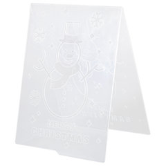 Клише для тиснения просты и удобны в использовании. Необходимо открыть папку, вложить в неё лист бумаги, картона или другого материала, закрыть папку и уложить в машинку для вырубки и тиснения ОС-5 в соответствии с инструкцией, входящей в набор машинки. Могут быть использованы и с другими машинками для вырубки и тиснения формата А5. Размер: 108х146 мм, Цвет: прозрачный, Рисунок: снеговик, Серия: Рельеф, Материал: пластик, Упаковка: пакет с европодвесом. Код: 663804