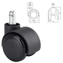 Комплект роликов для офисных кресел. Стандартный размер штока - 11х21 мм.Максимальная нагрузка - 45 кг на 1 колесо. Полиуретановое покрытие обеспечивает бесшумный ход и защищает пол от повреждений. Рекомендованы для ламината, паркета, плитки, линолеума.