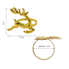 Каждое кольцо упаковано в пакетик с клеевым краем, весь набор упакован в гофрокороб. Тип товара: Кольца для салфеток, Материал: металл, Длина: 5.5 см, Ширина: 5.5 см, Цвет: золотистый, Способ крепления: нет, Дизайн: Олени. Код: 592487