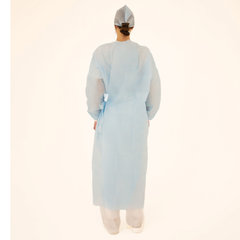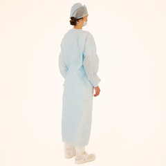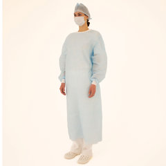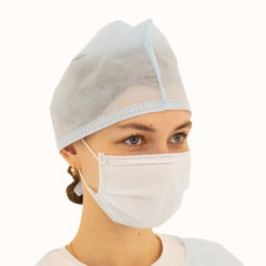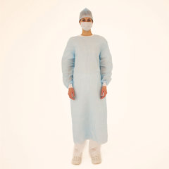 Состав: 1. Халат хирургический 140 см, рукава с манжетой, размер 52-54, спанбонд пл. 42 г/м², голубого цвета – 1 шт. 2. Шапочка «Колпак», спанбонд пл. 42 г/м², голубого цвета – 1 шт. 3. Маска медицинская на резинке, трехслойная, голубого цвета – 1 шт.
