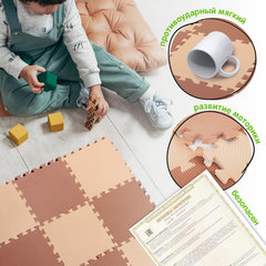 Коврик-пазл напольный 0,9х0,9 м, мягкий, бежевый, 9 элементов 30х30 см, толщина 1 см, ЮНЛАНДИЯ, 664661