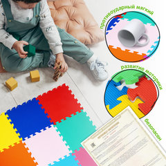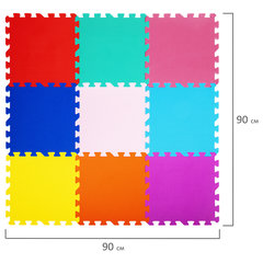 Коврик-пазл напольный 0,9х0,9 м, мягкий, цветной, 9 элементов 30х30 см, толщина 1 см, ЮНЛАНДИЯ, 664663