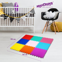 Коврики-пазлы ЮНЛАНДИЯ – мягкие коврики, обладающие теплоизоляционными и шумоизоляционными свойствами, изготовленные из безопасного материала. Легко собираются и разбираются, удобны и компактны в хранении.Коврик-пазл состоит из 9 квадратных элементов размерами 30х30 см. Толщина элементов составляет 1 см. Общая площадь – 90х90 см.