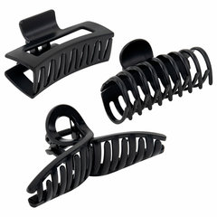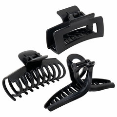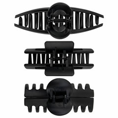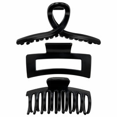Крабы для волос НАБОР 3 шт., 8,5 см / 8,5 см / 11 см, soft-touch, чёрный, MONTE VITA (МОНТЕ ВИТА), 457032
