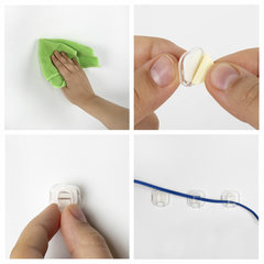 Крючки изготовлены из прозрачного пластика с акриловым клеем на обратной стороне. Для крепления крючка просто следуйте инструкции, приведенной на упаковке: 1) тщательно обезжирьте и высушите поверхность, на которой предполагается использовать крючок; 2) снимите защитный слой с клеевой основы крючка; 3) крепко прижимайте крючок в течение 30 секунд к нужной поверхности; 4) аккуратно закрепите провод.