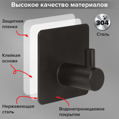 Крючки самоклеящиеся универсальные 4,5x4,5 см, КОМПЛЕКТ 4 шт., сталь, черные, LAIMA Home, 608786