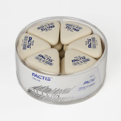 Количество в упаковке: 1 шт., Материал: синтетический каучук, Форма: треугольная, Стираемые письменные принадлежности: чернографитные карандаши, Цвет: белый, Серия: FACTIS TRI, Не оставляет бумажной пыли: да, Размер: 51х46х12 мм, Упаковка: пластиковая банка.