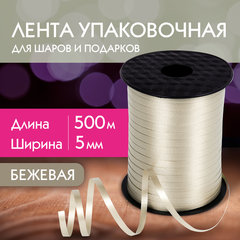 Лента упаковочная декоративная для шаров и подарков, 5 мм х 500 м, бежевая, ЗОЛОТАЯ СКАЗКА, 591814