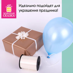 Лента упаковочная декоративная ЗОЛОТАЯ СКАЗКА предназначена для завязывания воздушных шаров и гирлянд, для декорирования подарков, для оформления праздничных композиций, кондитерских наборов. Лента также широко используется во флористике и в рукоделии.Лента шириной 5 мм и длиной 500 м изготовлена из прочного полипропилена (80%) и полиэтилена (20%). Толщина ленты 120 мкм (0,12 мм). Цвет ленты - бежевый. Лента намотана на пластиковую бабину и упакована в термоусадочную пленку, поверх которой есть два стикера (цветной стикер с демонстрацией товара и черно-белый стикер с технической информацией).