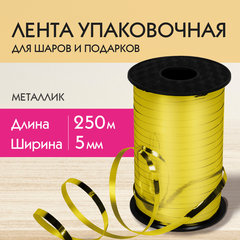Лента упаковочная декоративная для шаров и подарков, металлик, 5 мм х 250 м, золото, ЗОЛОТАЯ СКАЗКА, 591815