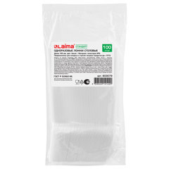 Тип товара: ложка столовая, Назначение: для холодного и горячего, Длина: 165 мм, Соответствует требованиям ГОСТа: ГОСТ Р 50962-96, Материал: полистирол, Товар относится к сегменту ЭКОНОМ: да, Количество в упаковке: 100 шт., Цвет: белый, Компакт-упаковка: да.