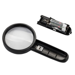 Производит трехкратное увеличение. Оснащена светодиодной подсветкой. Оправа лупы выступает за края линзы, защищая её от царапин. Снабжена удобной пластиковой ручкой. Питание - 3 батарейки типа AАA/1,5В (в комплект не входят). Тип лупы: ручная, Количество линз: 1, Диаметр основной линзы: 75 мм, Кратность увеличения: 3, Серия: Light glass, Наличие подсветки: да, Источник питания: 3 батарейки типа AАA/1, 5В, Материал линзы: стекло, Материал корпуса: пластик, Длина: 170 мм, Ширина: 80 мм, Глубина: 27 мм, Вес: 0.068 кг. Код: 454130
