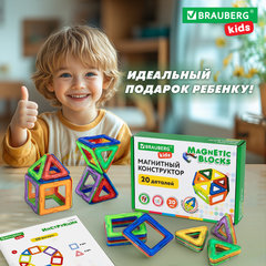 Магнитный конструктор MAGNETIC BLOCKS, 20 магнитных деталей, BRAUBERG KIDS, код 1С, 665718