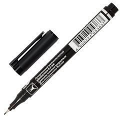 Цвет чернил: черный, Количество в комплекте: 1 шт., Форма наконечника: супертонкая, Толщина линии письма: 0.5 мм, Перманентный: да, Форма корпуса: круглая, Серия: нет, Водостойкие чернила: да, Повышенная светостойкость: да, Быстросохнущие чернила: да, Диаметр корпуса: 10 мм, Материал корпуса: пластик, Наличие клипа: да, Основа чернил: спиртовая, Упаковка: картонная коробка.