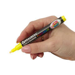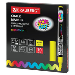 Маркер меловой "POP-ART" ЖЕЛТЫЙ, 3,5 мм, стираемый, для гладких поверхностей, BRAUBERG, 151520
