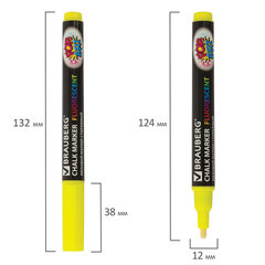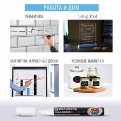 Сухостираемый меловой маркер BRAUBERG "POP-ART" - оригинальный инструмент для оформления различных зон помещений. Идеален для использования на школьных занятиях и детского творчества.СПОСОБ ПРИМЕНЕНИЯ: 1. Перед использованием хорошо встряхнуть с закрытым колпачком. 2. Снять колпачок, надавить на наконечник, дождаться, когда чернила полностью пропитают его. 3. После использования плотно закрыть колпачок.