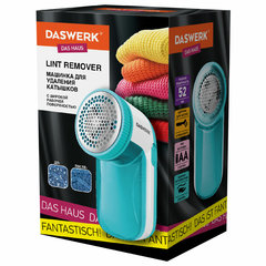 Машинка для удаления катышков DASWERK создана для бережного и легкого ухода за различными текстильными изделиями из шерсти, кашемира и других видов тканей.Корпус машинки выполнен из прочного АБС-пластика в бело-голубых цветах, лезвия и защитная сетка выполнены из нержавеющей стали. Широкая рабочая поверхность диаметром 52 мм позволяет захватить большую поверхность ткани одним движением, что существенно ускоряет процесс работы.