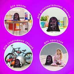 Мешок упакован в плотный ПЭТ-пакет с европодвесом, который обеспечивает сохранность изделия при хранении и транспортировке. Предназначение: для девочек, Возрастная группа: 7-13 лет, Серия: KIDS, Дизайн: Amazed cat, Материал: полиэстер, Водоотталкивающая ткань: да, Затягивается шнурком: да, Высота: 42 см, Ширина: 34 см, Цвет: черный. Код: 271629