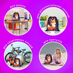 Мешок упакован в плотный ПЭТ-пакет с европодвесом, который обеспечивает сохранность изделия при хранении и транспортировке. Предназначение: для девочек, Возрастная группа: 7-13 лет, Серия: KIDS, Дизайн: Fairy fox, Материал: полиэстер, Водоотталкивающая ткань: да, Затягивается шнурком: да, Высота: 42 см, Ширина: 34 см, Цвет: фиолетовый. Код: 273433