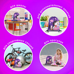 Мешок упакован в плотный ПЭТ-пакет с европодвесом, который сохранит качество и товарный вид при хранении и транспортировке. Предназначение: для девочек, Возрастная группа: 7-10 лет, Серия: KIDS REFLECT, Дизайн: Sweet cheeks, Cветоотражающий элемент: да, Материал: полиэстер, Водоотталкивающая ткань: да, Затягивается шнурком: да, Высота: 46 см, Ширина: 36 см, Цвет: фиолетовый. Код: 272390