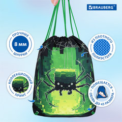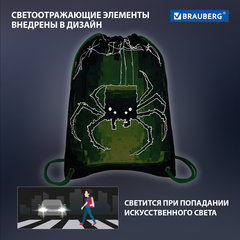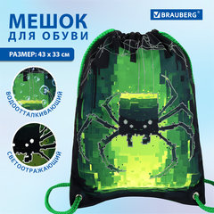 Мешок для обуви BRAUBERG PREMIUM, карман, подкладка, светоотражайка, 43х33 см, "Digital spider", 273444