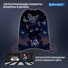 Мешок для обуви BRAUBERG PREMIUM, карман, подкладка, светоотражайка, 43х33 см, "Night catcher", 273442
