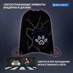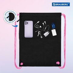 Мешок для обуви BRAUBERG PREMIUM, карман, подкладка, светоотражайка, 43х33 см, "Pink lava", 273441