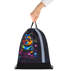 Мешок для обуви упакован в плотный ПЭТ-пакет, который сохранит качество и товарный вид изделия при хранении и транспортировке. Предназначение: для девочек, Возрастная группа: 7-10 лет, Серия: REFLECT, Дизайн: True friend, Cветоотражающий элемент: да, Материал: полиэстер, Водоотталкивающая ткань: да, Затягивается шнурком: да, Высота: 46 см, Ширина: 36 см, Цвет: черный. Код: 272410