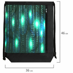 Мешок для обуви упакован в плотный ПЭТ пакет, который сохранит качество и товарный вид при хранении и транспортировке. Предназначение: для мальчиков, Возрастная группа: 7-13 лет, Серия: PATTERN, Дизайн: Matrix, Материал: полиэстер, Водоотталкивающая ткань: да, Затягивается шнурком: да, Высота: 46 см, Ширина: 36 см, Цвет: черно-зеленый. Код: 271068